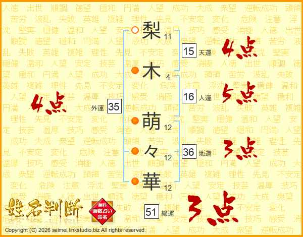 梨木萌々華さんの外運は35画の4点!