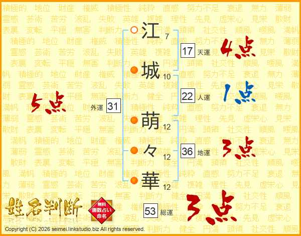 江城萌々華さんの外運は31画の5点!