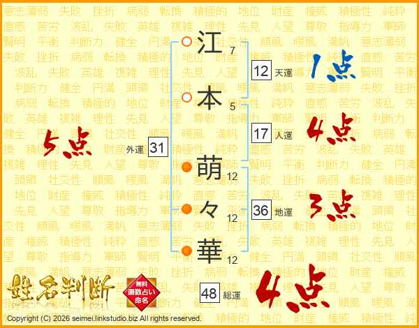 江本萌々華さんの総運は48画の4点!