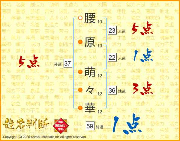 腰原萌々華さんの総運は59画の1点!