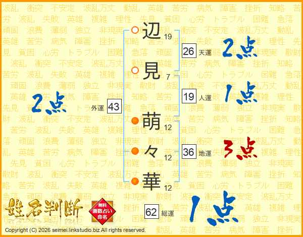 辺見萌々華さんの外運は43画の2点!