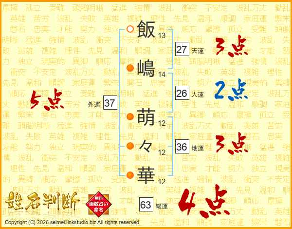 飯嶋萌々華さんの外運は37画の5点!
