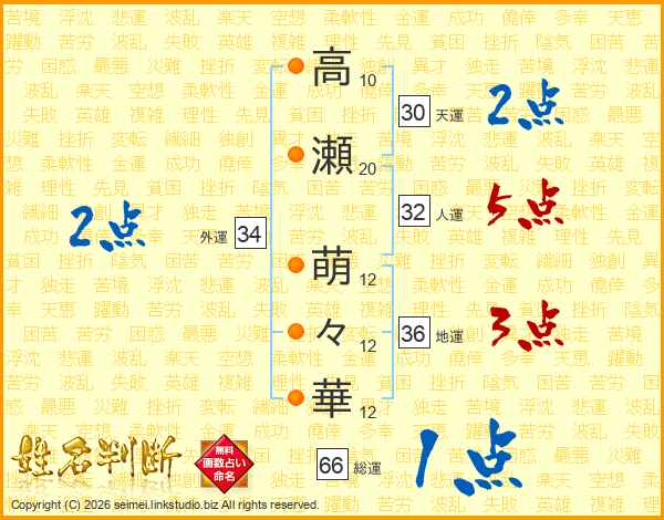 高瀬萌々華さんの総運は66画の1点!