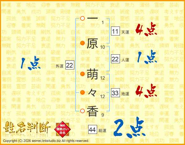 一原萌々香さんの総運は44画の2点!