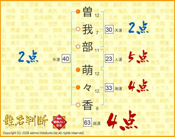 曽我部萌々香さんの総運は63画の4点!