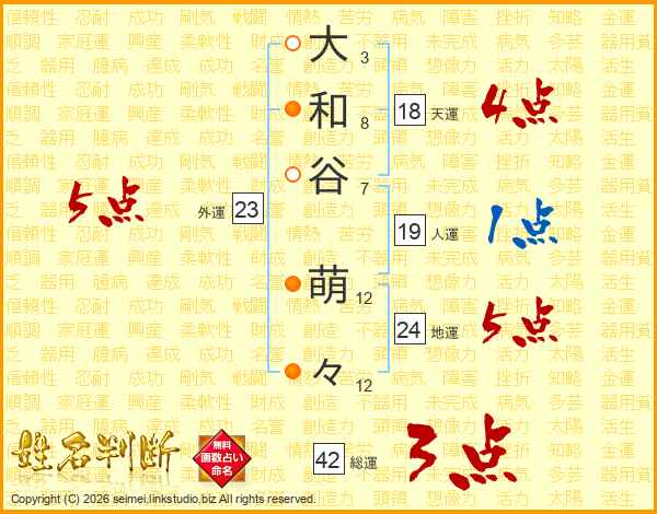 大和谷萌々さんの天運は18画の4点!