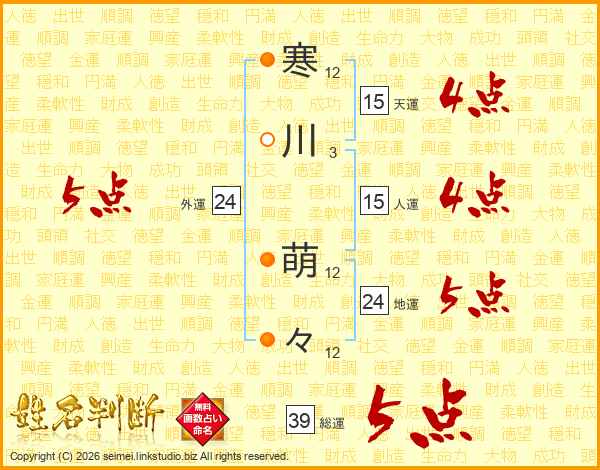 寒川萌々さんの総運は39画の5点!