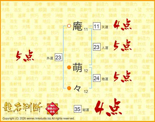 庵萌々さんの総運は35画の4点!