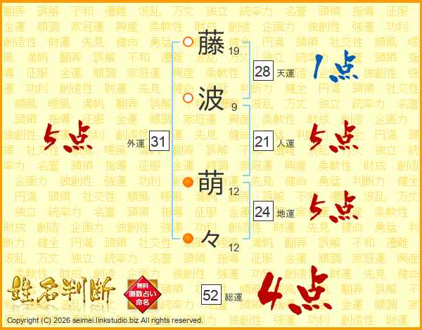 藤波萌々さんの外運は31画の5点!