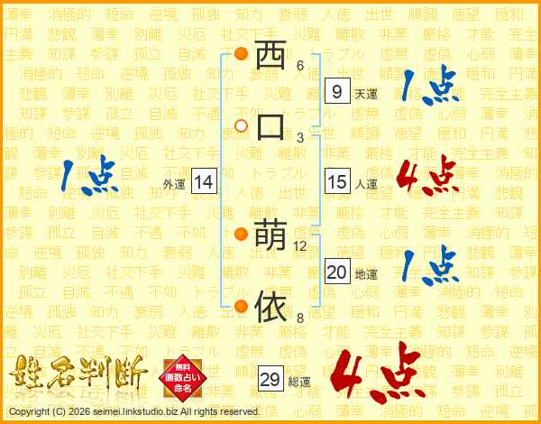 西口萌依さんの総運は29画の4点!