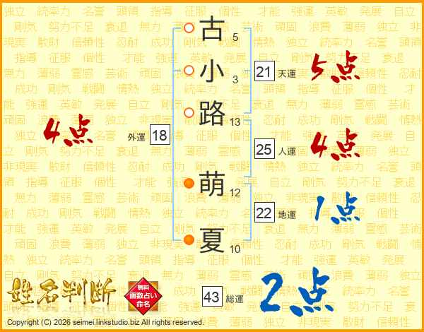 古(5画)小(3画)路(13画) 萌(12画)夏(10画)