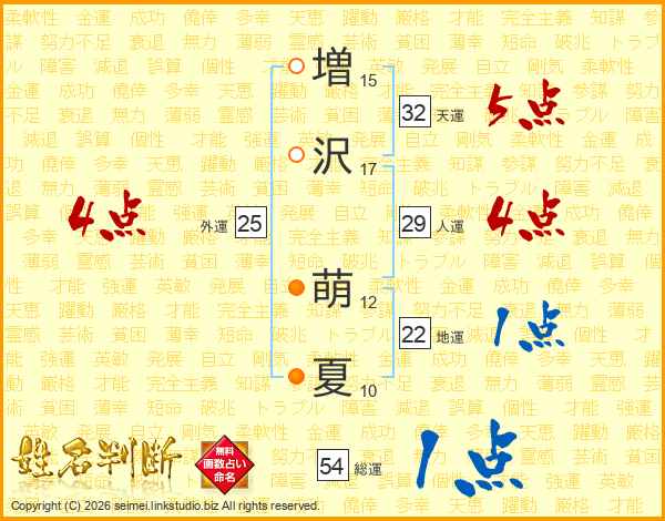 増(15画)沢(17画) 萌(12画)夏(10画)