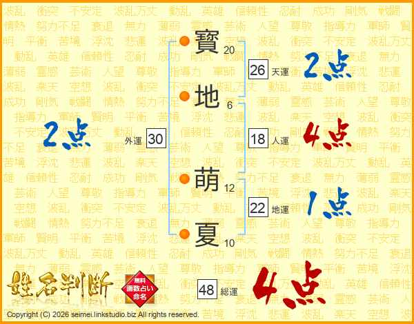 寳地萌夏さんの総運は48画の4点!
