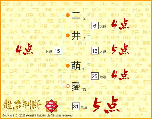 二井萌愛さんの総運は31画の5点!