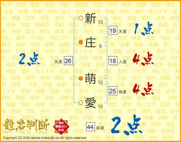 新(13画)庄(6画) 萌(12画)愛(13画)