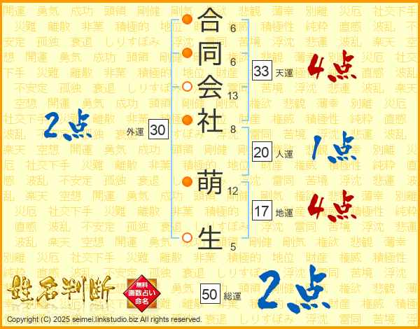 合(6画)同(6画)会(13画)社(8画) 萌(12画)生(5画)