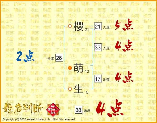 櫻萌生さんの総運は38画の4点!