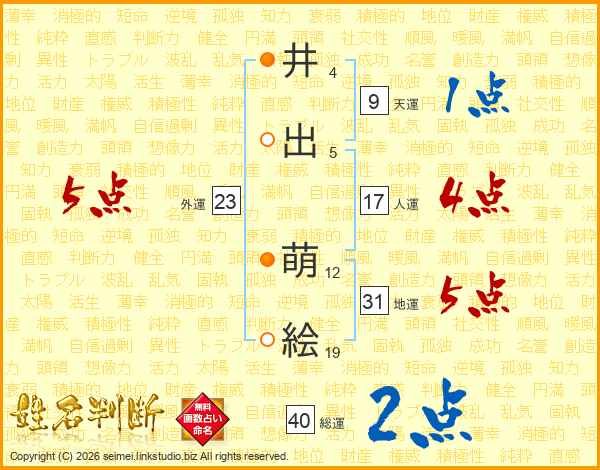 井(4画)出(5画) 萌(12画)絵(19画)