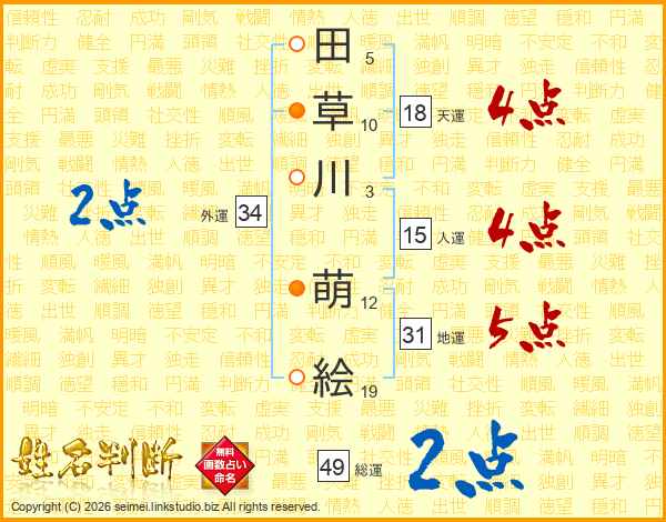 田草川萌絵さんの天運は18画の4点!
