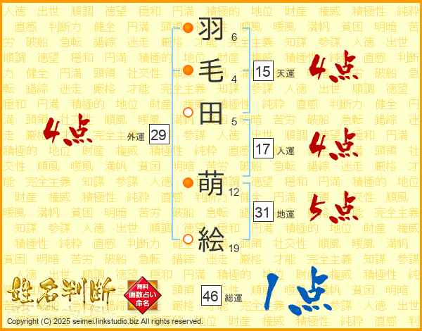 羽(6画)毛(4画)田(5画) 萌(12画)絵(19画)
