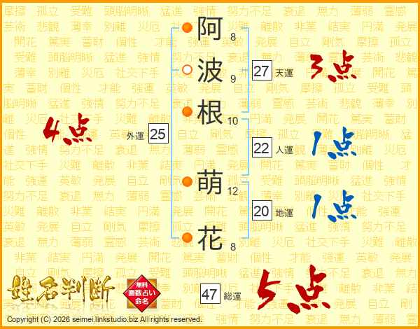 阿波根萌花さんの総運は47画の5点!