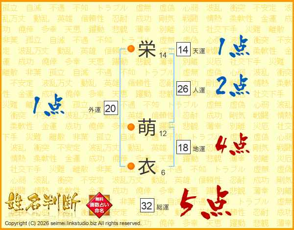 栄(14画) 萌(12画)衣(6画)
