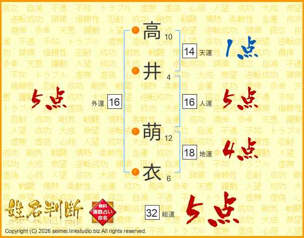 高井萌衣さんの総運は32画の5点!