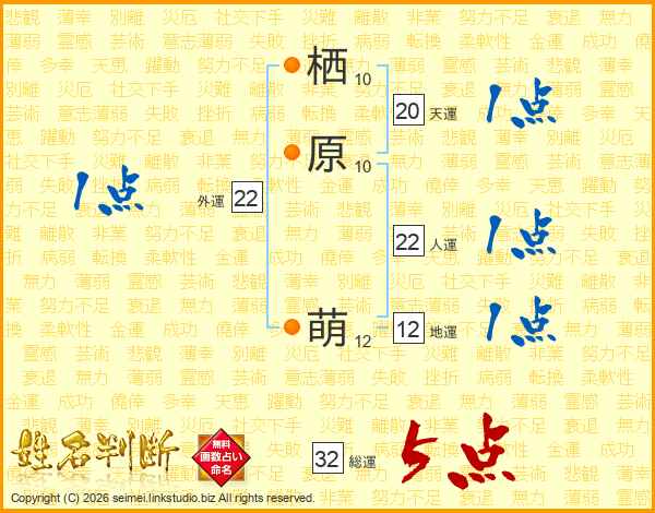 栖原萌さんの総運は32画の5点!
