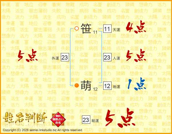 笹萌さんの外運は23画の5点!
