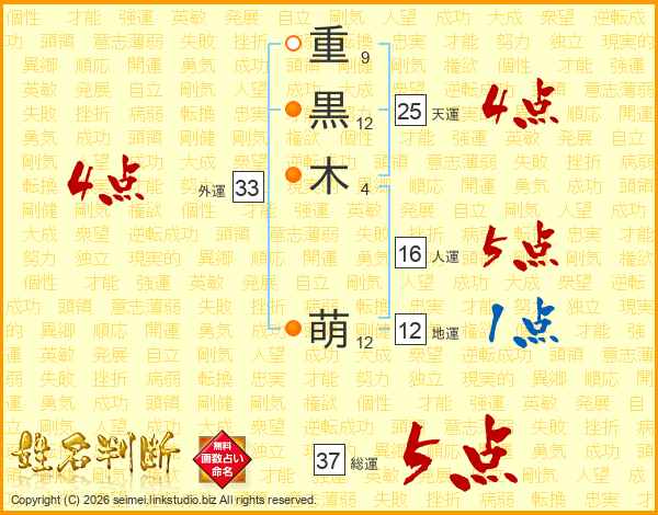 重黒木萌さんの総運は37画の5点!