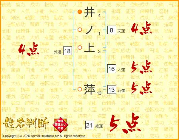 井ノ上萍さんの総運は21画の5点!