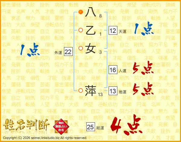八乙女萍さんの総運は25画の4点!