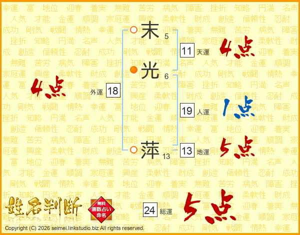 末光萍さんの総運は24画の5点!