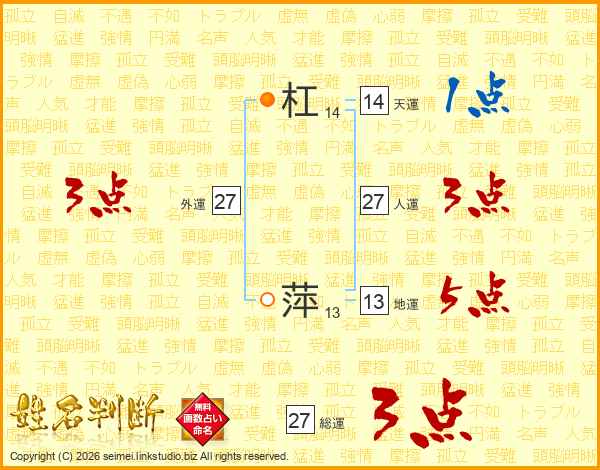 杠萍さんの総運は27画の3点!