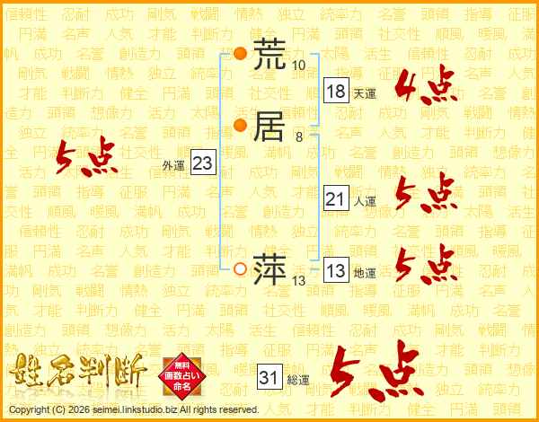 荒居萍さんの人運は21画の5点!