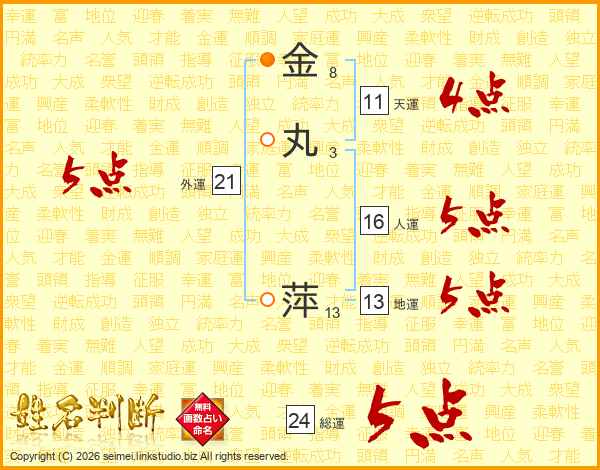 金丸萍さんの総運は24画の5点!