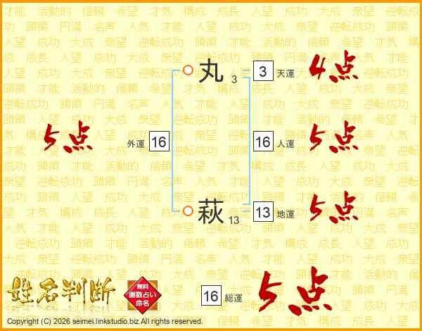 丸萩さんの総運は16画の5点!