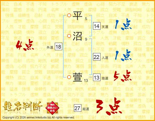 平沼萱さんの総運は27画の3点!