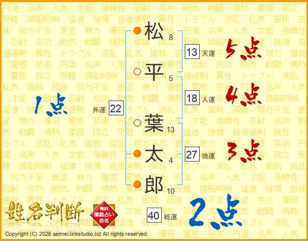 松平葉太郎さんの天運は13画の5点!