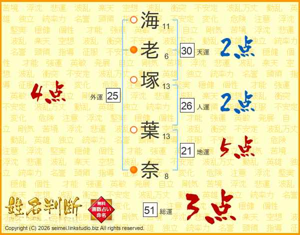 海老塚葉奈さんの総運は51画の3点!