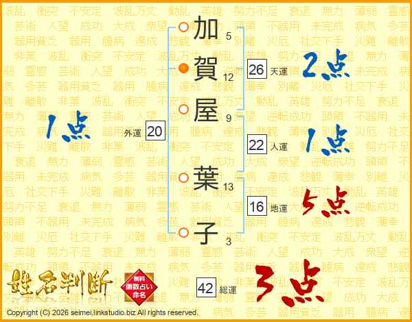 加賀屋葉子さんの総運は42画の3点!