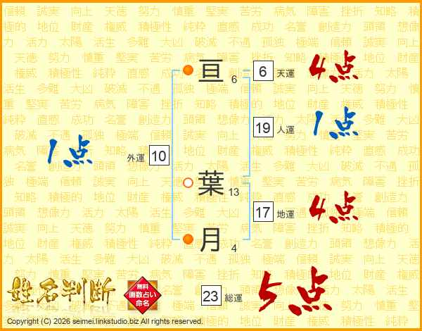 亘(6画) 葉(13画)月(4画)