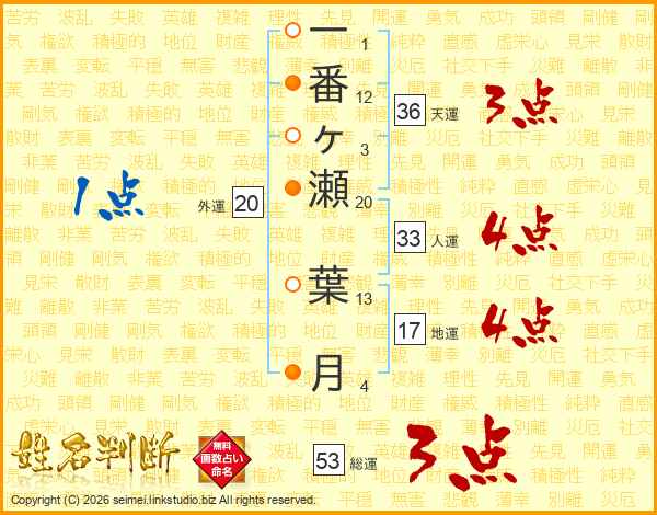 一番ヶ瀬葉月さんの総運は53画の3点!