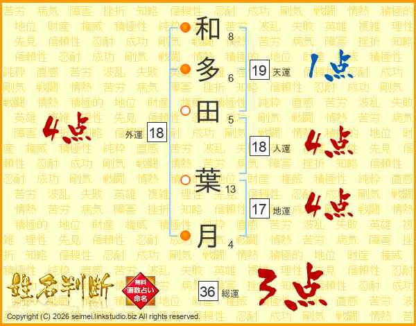 和(8画)多(6画)田(5画) 葉(13画)月(4画)