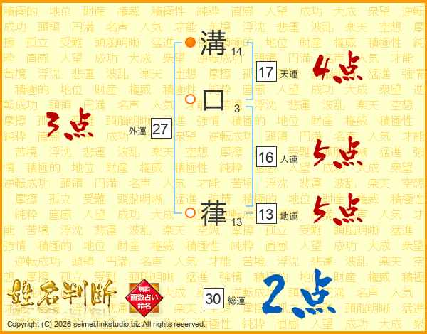 溝口葎さんの天運は17画の4点!
