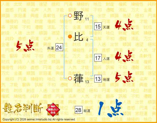 野比葎さんの外運は24画の5点!