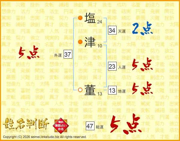 塩津董さんの総運は47画の5点!