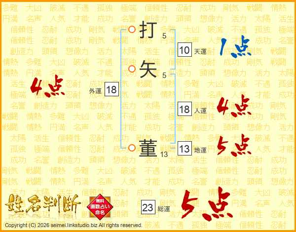 打矢董さんの総運は23画の5点!