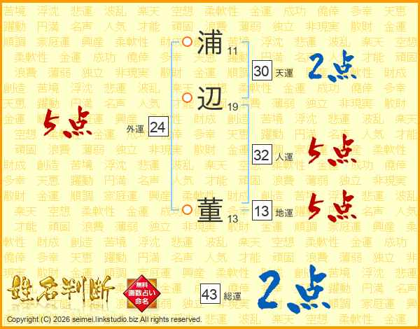 浦辺董さんの総運は43画の2点!
