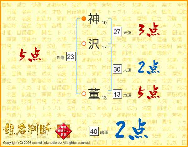 神(10画)沢(17画) 董(13画)